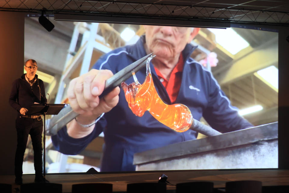majeures et ses grands enjeux actuels. Mêlant narratif scientifique, musique électronique et vidéos, cette conférence musicalisée met à l'honneur pendant 45 minutes le travail de l'artisan verrier, de l'ingénieur et du chercheur ainsi que les jeux de couleur, de transparence et de mise en forme qui sont propres au verre.